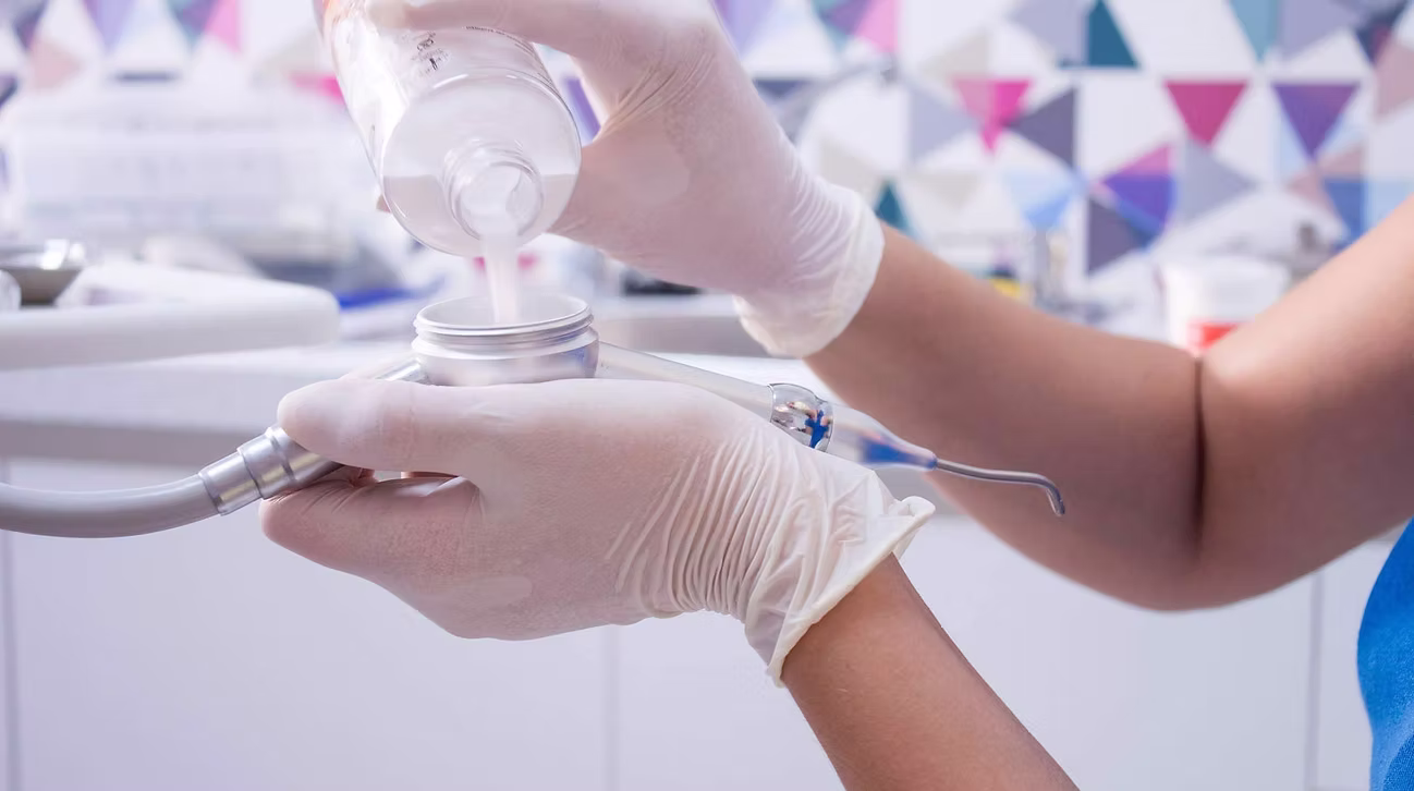 Ta pomocí ultrazvuku a ručních nástrojů odstraní nánosy kamene, i v místech těžko přístupných pro pacienta.